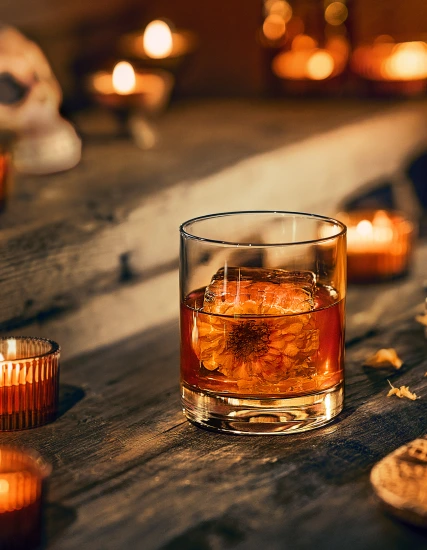 | Garnish: Dehydrated Orange Slide | |